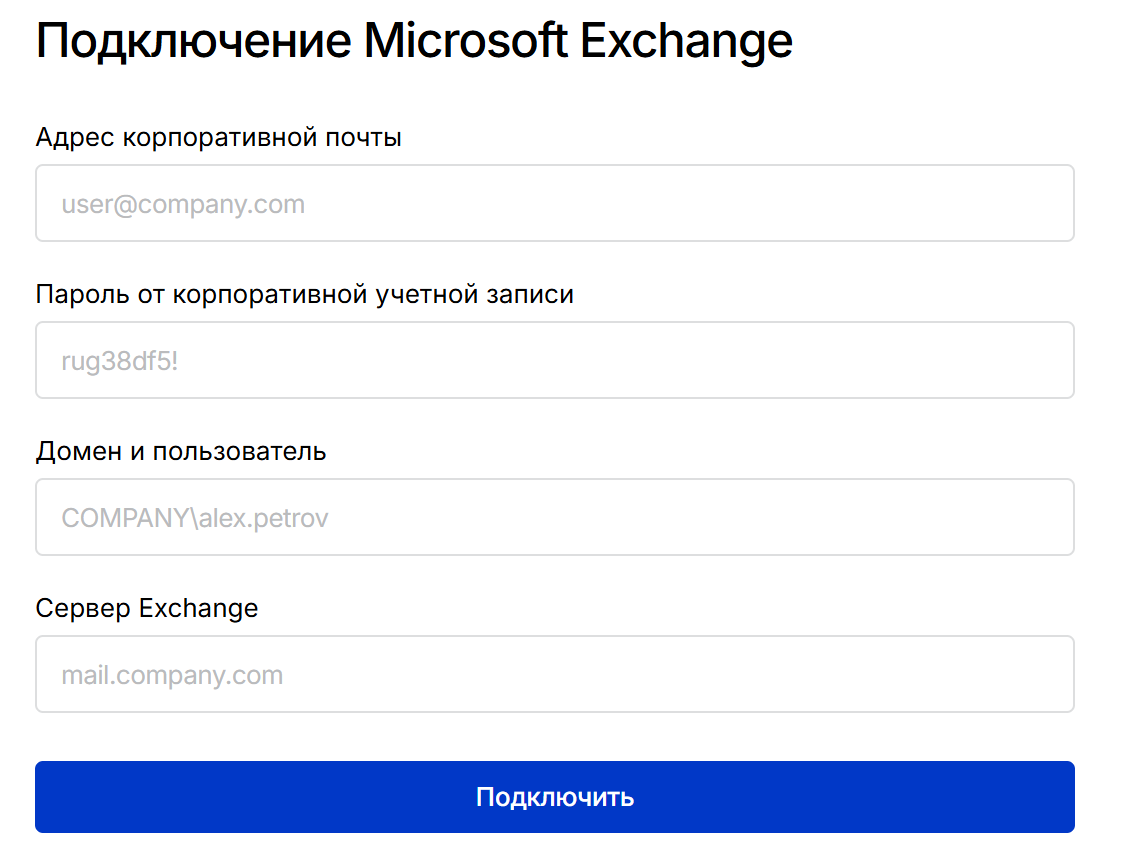 Для корпоративных аккаунтов, использующих локальный Exchange Server, доступна интеграция через Exchange Web Services (EWS). Этот способ подходит для компаний с собственной IT-инфраструктурой.