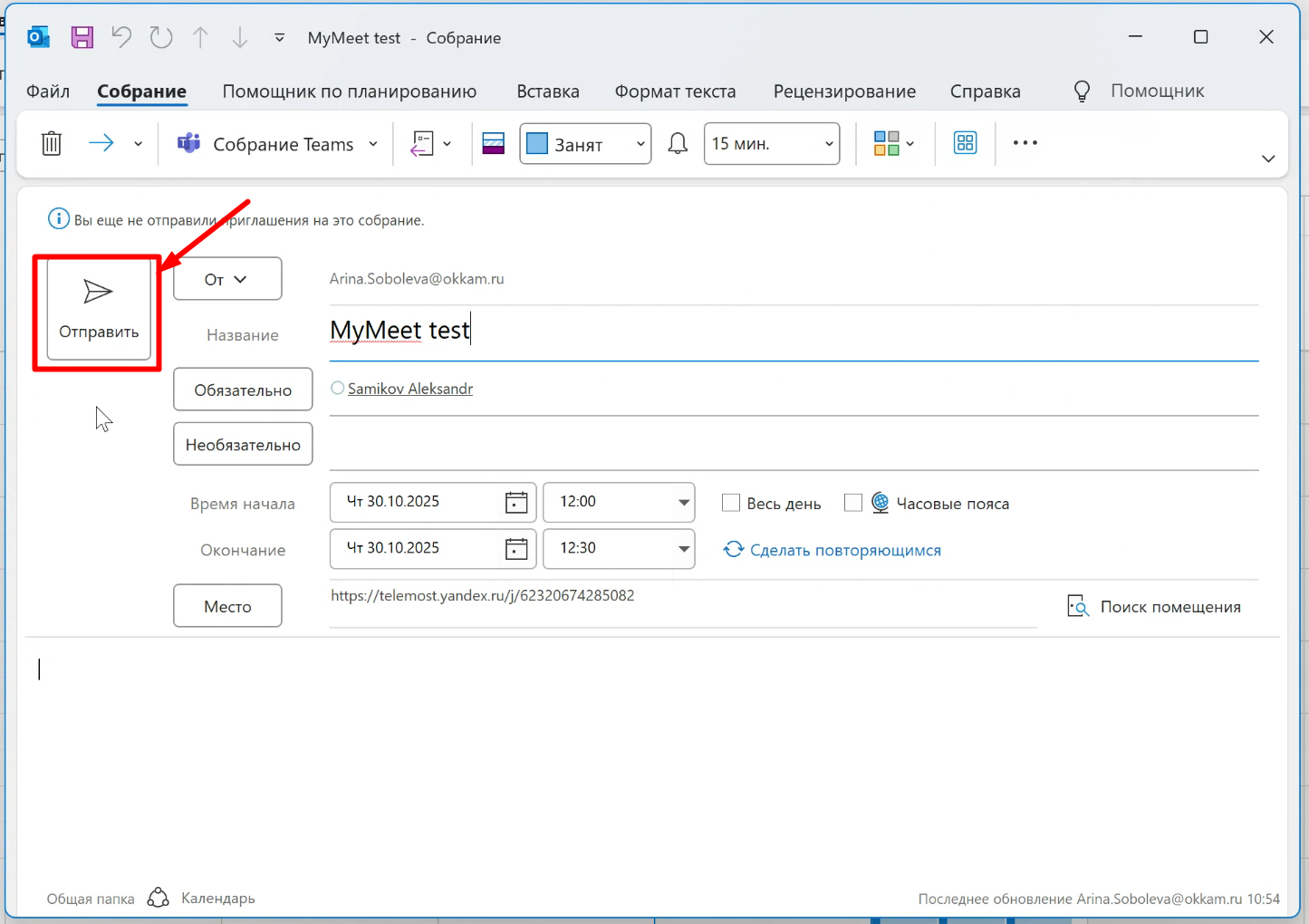 Шаг 4. Нажмите “отправить”, встреча появится в вашем календаре.