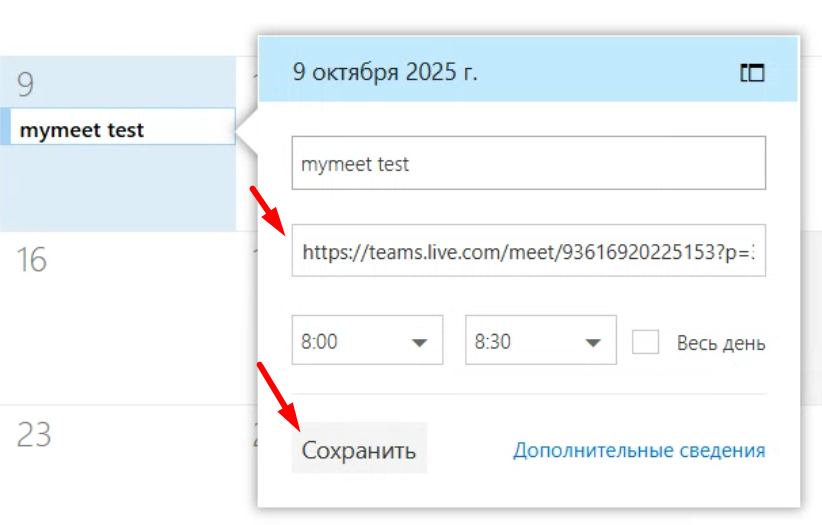 Шаг 3. Нажмите кнопку “сохранить”, встреча появится в вашем календаре.