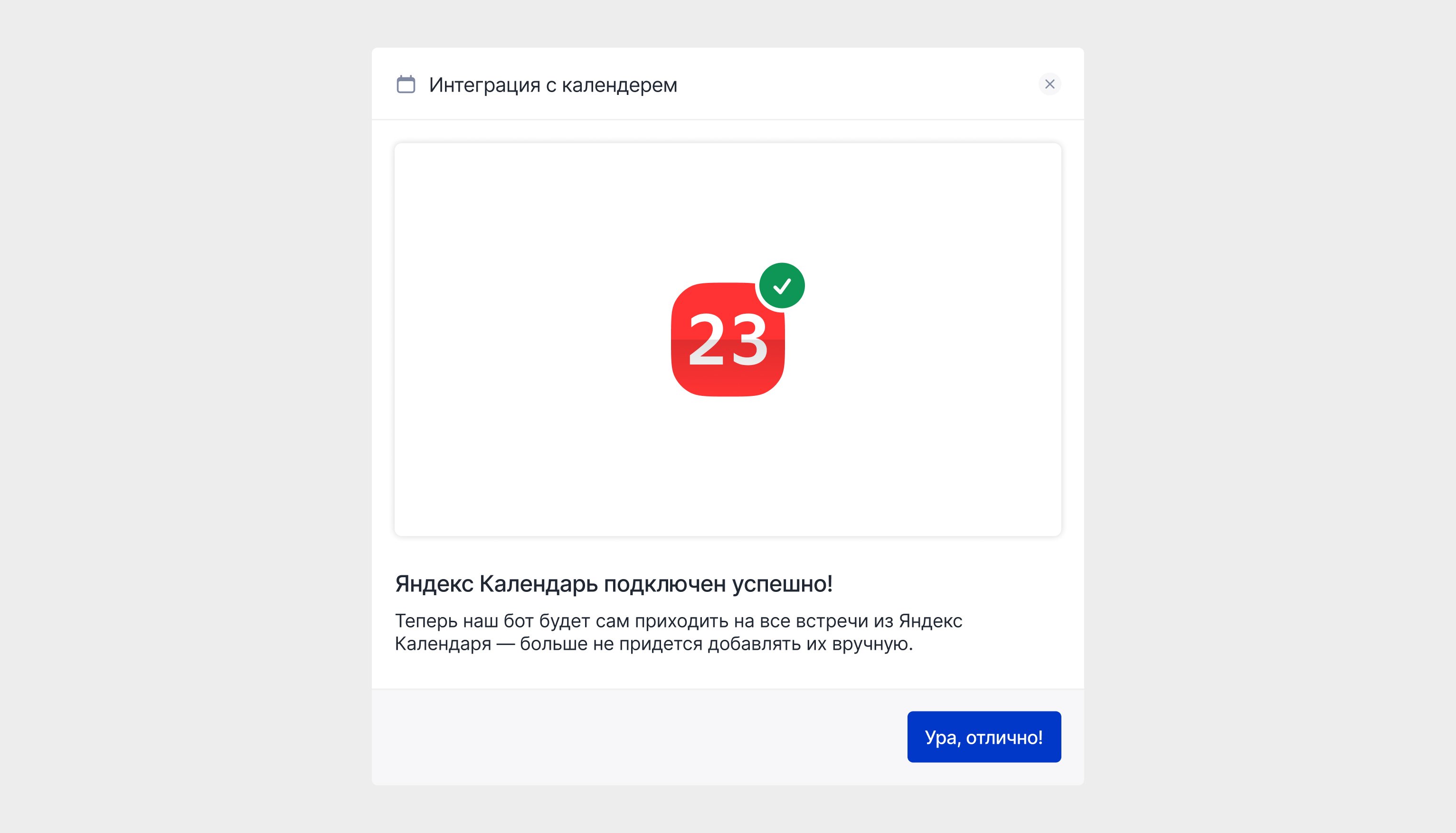 После подключения календаря система начинает регулярно сканировать события: