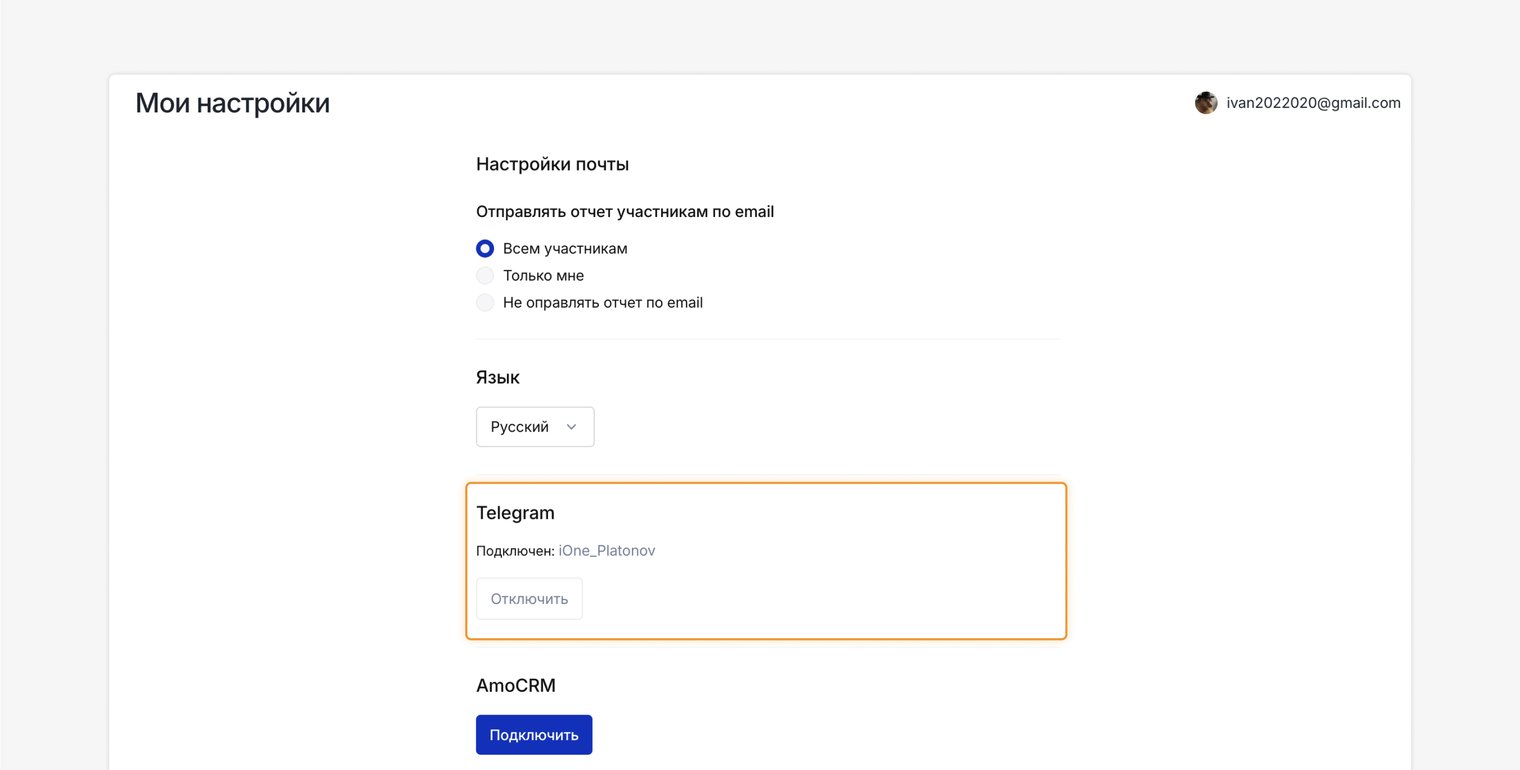 Как привязать: нажмите "Настройки" → "Привязать аккаунт mymeet". Откроется окно авторизации — войдите под своим логином. Отключение и отображение подключенного аккаунта отображается в настройках в личном кабинете.